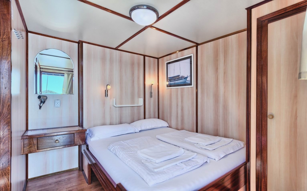 • With three persons sharing a cabin (limited availability), we offer a 200 euro discount per person on the tour base price (not combinable with other discounts). Triple cabins are equipped with a double bed and a single bed (mainly a bunk).