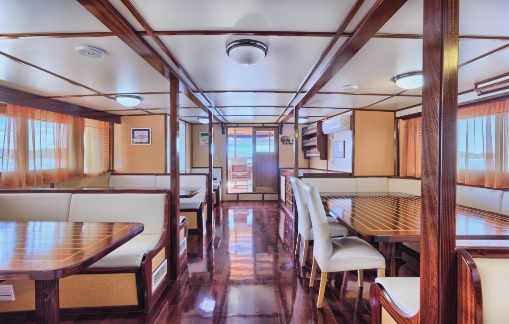 The on-board chef is a member of the crew and prepares the breakfast and and or two warm meals a day. The catering consists of 2 x full board and 5 x half board. Catering starts with the dinner on the arrival day and ends with the breakfast on the departure day.